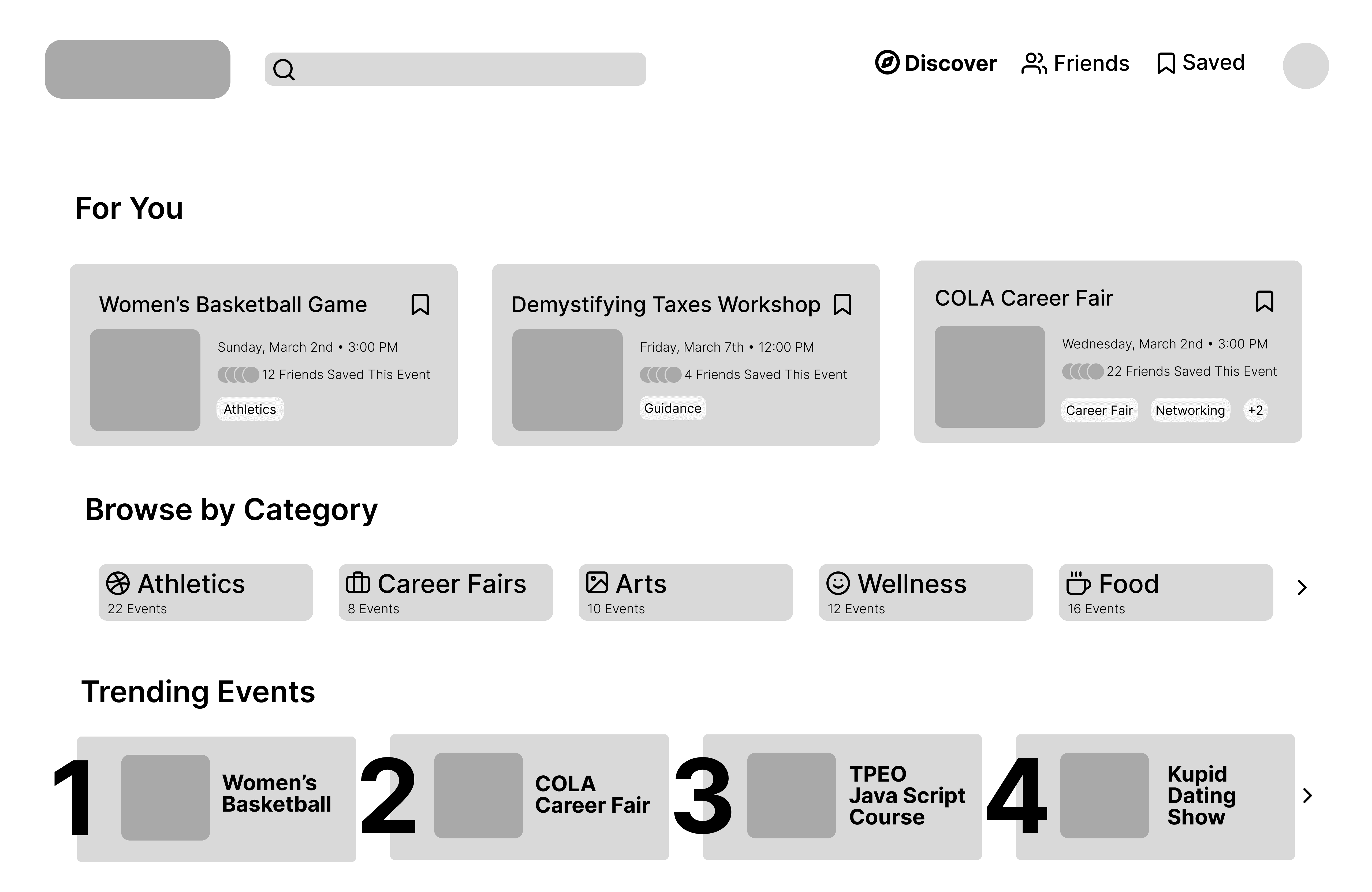 The new design introduced a personalized dashboard with trending and recommended events, a search and filter system to easily browse by category or organization, and a My Events hub where students can save, RSVP, and manage events